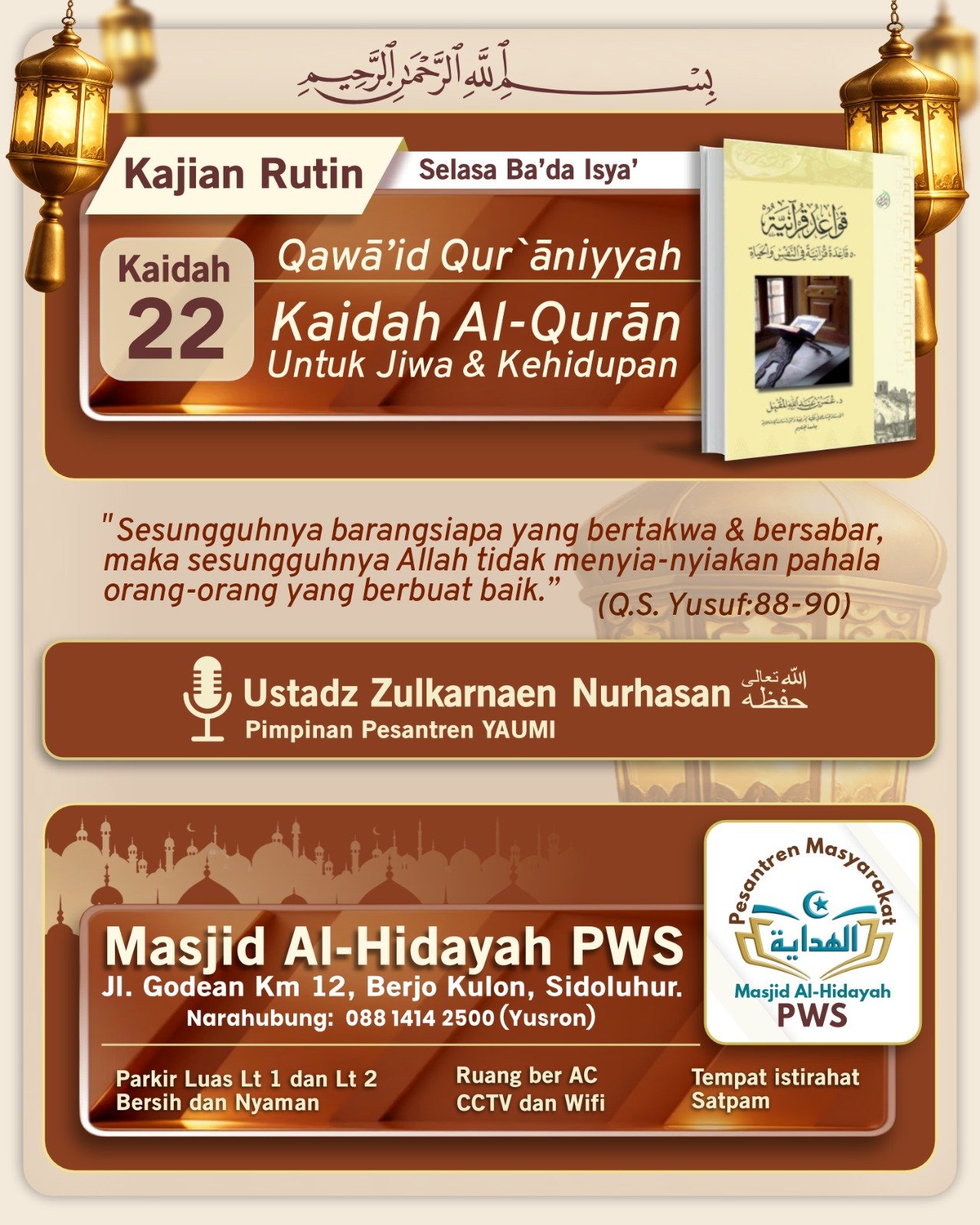 Masjid Masjid Al-Hidayah PWS Setiap Selasa, Ba’da Isya - Selesai