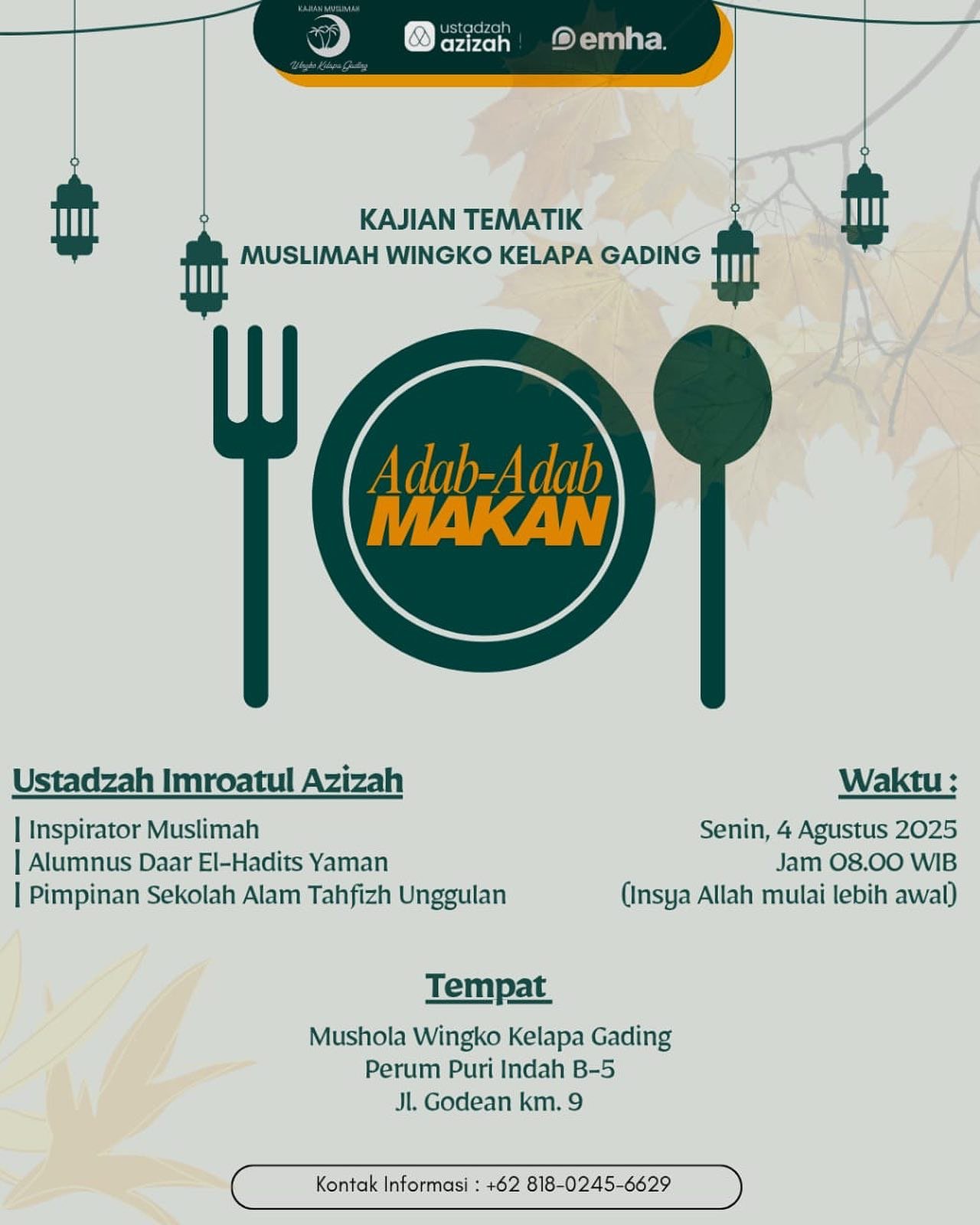 Pesantren Muslim Center Setiap Ahad, Pukul 06:30 - 07:30 WIB